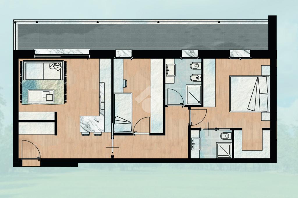 Proponiamo trilocale situato al piano primo, caratterizzato dalla presenza di un ampio terrazzo esclusivo che valorizza l’abitazione e ne amplia la fruibilità. Internamente l’immobile si sviluppa con una zona living con cucina a vista, disimpegno, due servizi, camera matrimoniale e singola.