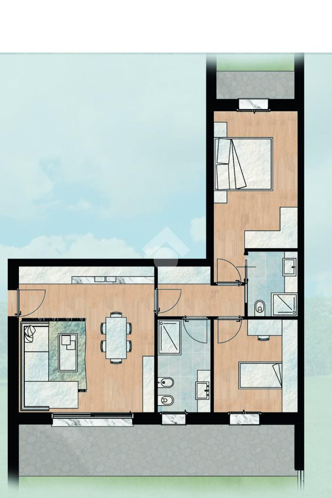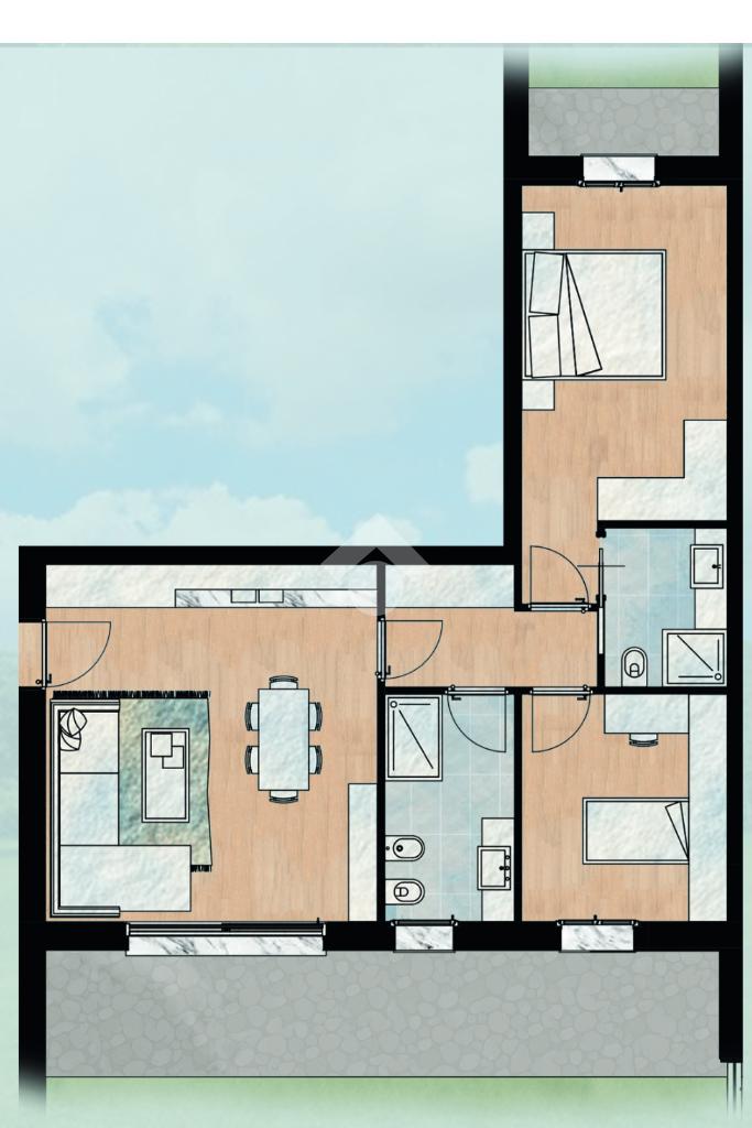 Proponiamo trilocale situato al piano terra, caratterizzato dalla presenza di un giardino esclusivo che valorizza l’abitazione e ne amplia la fruibilità. Internamente l’immobile si sviluppa con una zona living con cucina a vista, disimpegno, due servizi, camera matrimoniale e singola.